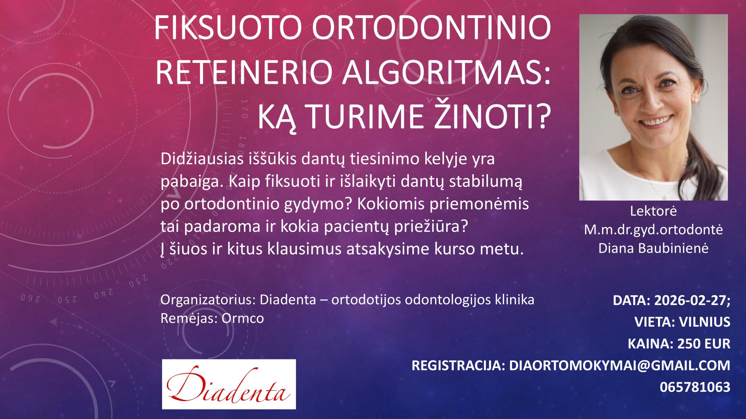 Sertifikatas: gydytojams odontologams, gyd. odontologams specialistams, gydytojo odontologo padėjėjams, burnos higienistams, dantų technikams, gydytojo odontologo pagalbininkams – 6 val. (iš jų: 2 val.- burnos ligų profilaktikos)