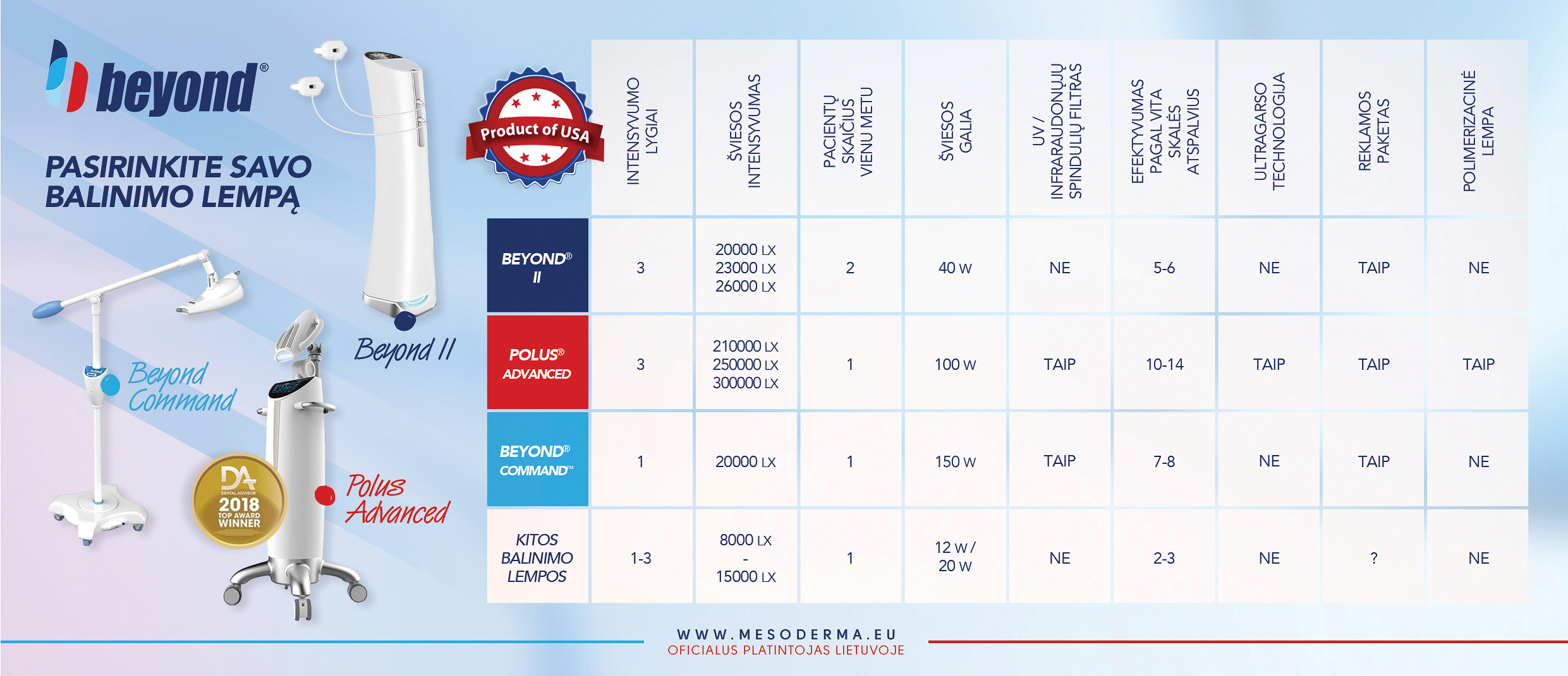 BEYOND® Polus® Advanced dantų balinimo lempos nauja LightBridge™ technologija sujungia halogeną ir LED į švelniai mėlyną balinimo šviesos spektrą. Tai inovatyvi technologija su pažangiausia filtravimo sistema, turinčia 30 lęšių, kurie padengti 200000 optinių sluoksnių, užtikrinančių puikią apsaugą nuo ultravioletinių spindulių (UV) skleidžiamos šilumos į danties audinius. Ši sistema užtikrina galimybę turėti kerinčią šypseną vos per 30 min.