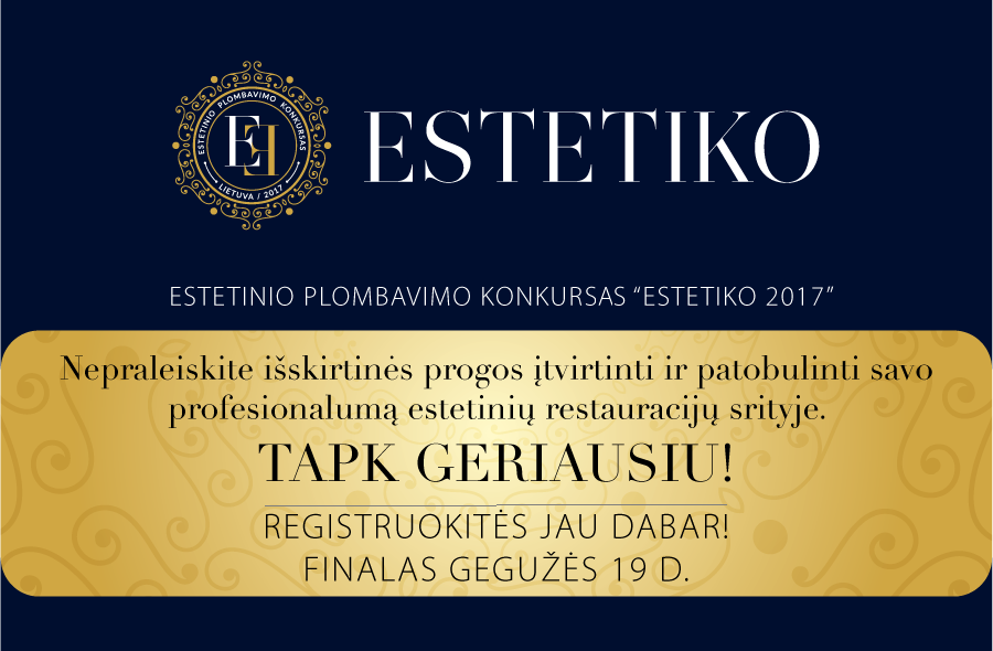 Šiais metais „Nacionalinė estetinės odontologijos akademija“ vėl žengia su didelio pasisekimo sulaukusiu, išskirtiniu ir vieninteliu tokiu estetinio plombavimo konkursu Lietuvoje – ESTETIKO, kuriame dalyvauja tik geriausi šalies odontologai.