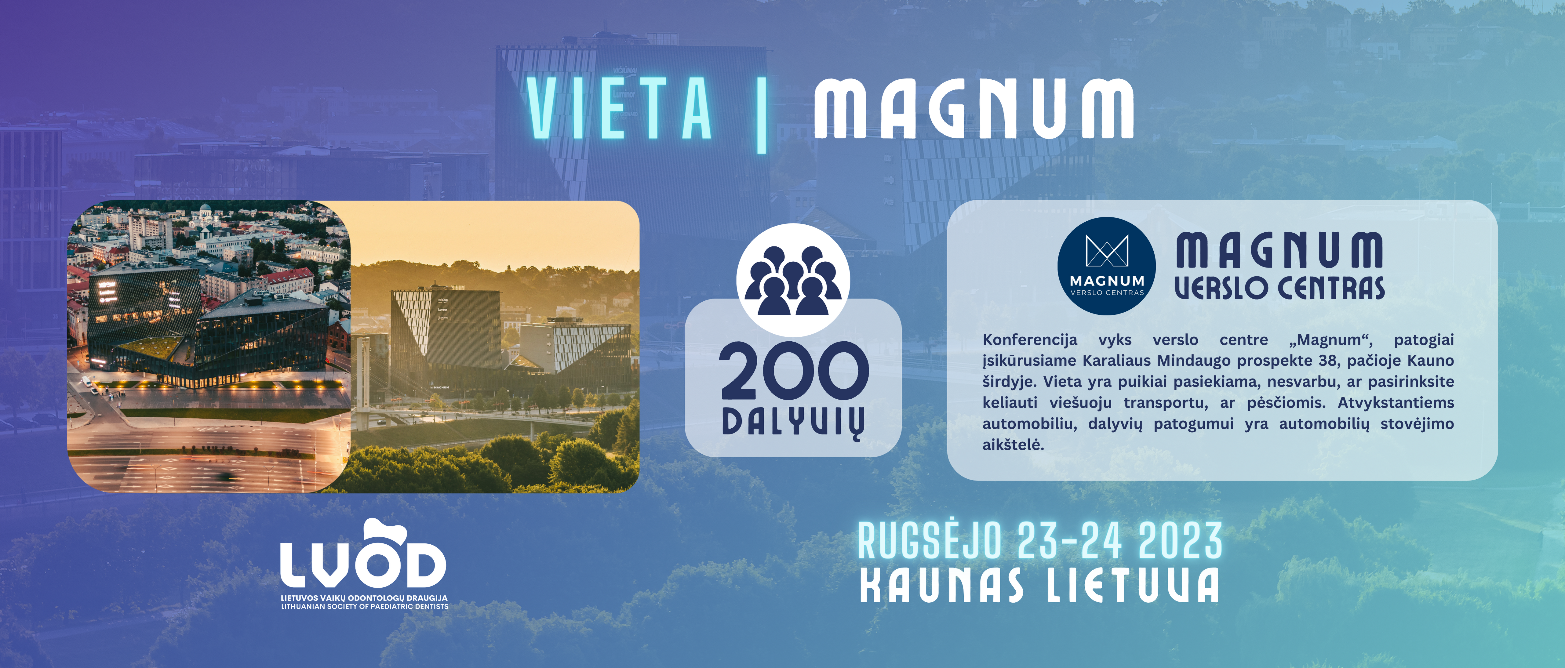 Kviečiame Jus į Lietuvos vaikų odontologų draugijos (LVOD) organizuojamą renginį „LVOD konferencija | NAUJI HORIZONTAI VAIKŲ ODONTOLOGIJOJE“, kuris įvyks 2023 m. rugsėjo 23-24 d., MAGNUM verslo centre, Kaune.