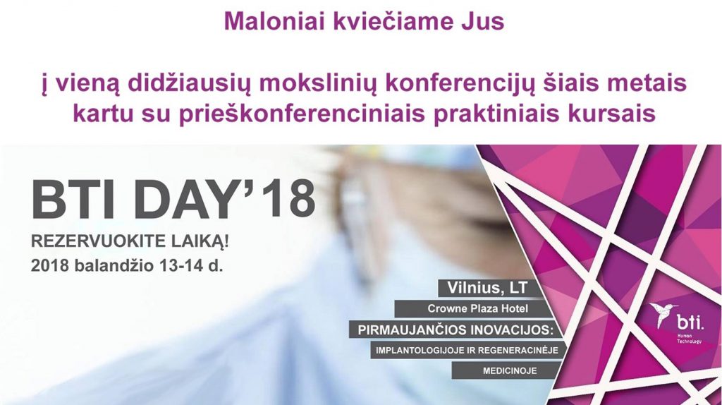 Konferencija: Konferencija vyks 2018 m. Balandžio 14 d. Tema: “Metodai gerinantys kaulo kokybę: nuo implantacijos iki galutinio protezavimo”