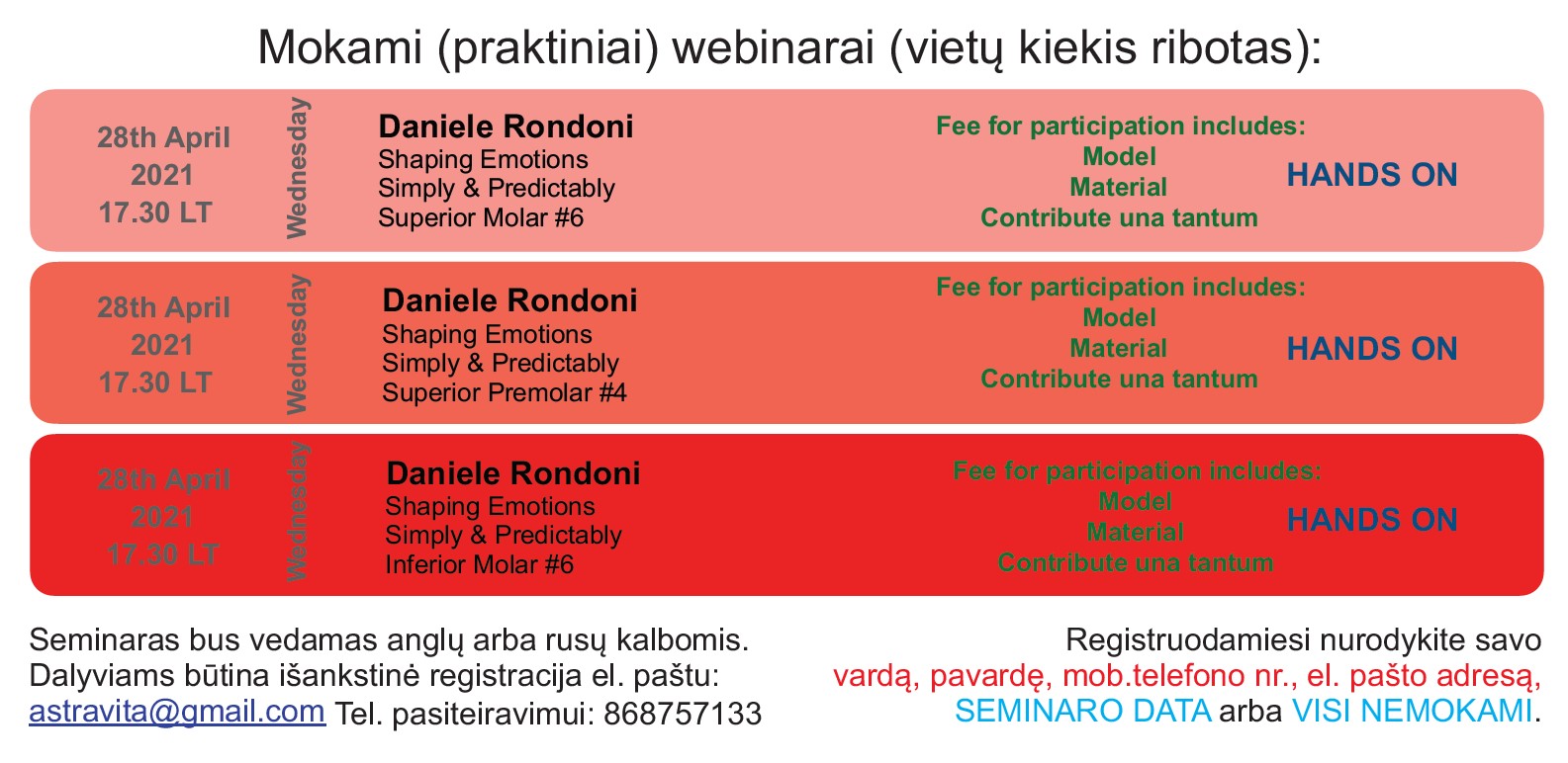 Dalyviams būtina išankstinė registracija el. paštu astravita@gmail.com