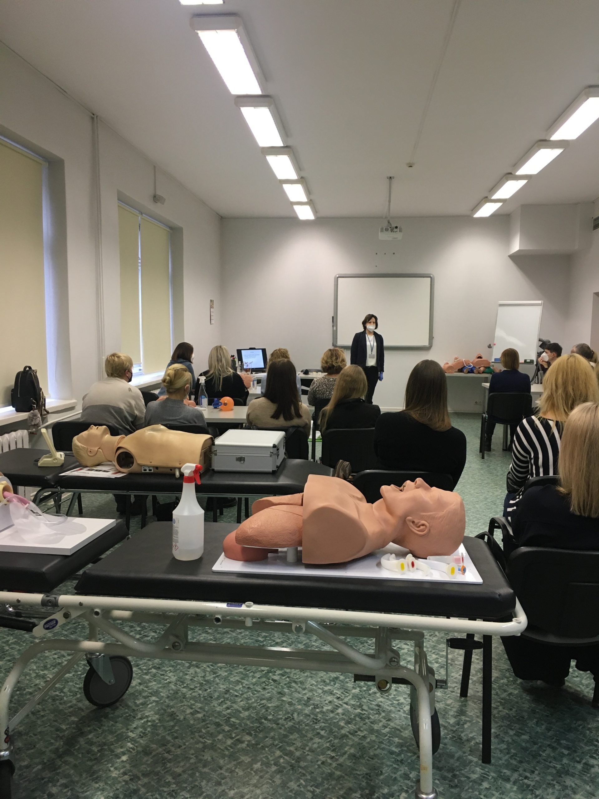 Vykstant mokymams atliekamos praktinės situacijos vadovaujantis išdėstyta teorine medžiaga, naudojamos medicininės priemonės. Dalyviai turi atlikti veiksmus teisinga veiksmų seka, identifikuoti klaidas.