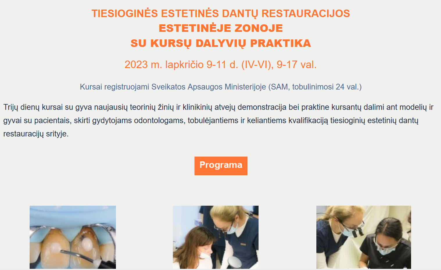 Tiesioginės estetinės dantų restauracijos estetinėje zonoje su kursų dalyvių praktika