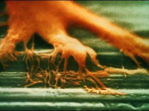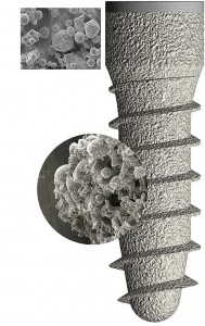 Elektroninio mikroskopo pagalba galima matyti kaip kaulo ląstelė suauga su titaniniu paviršiumi