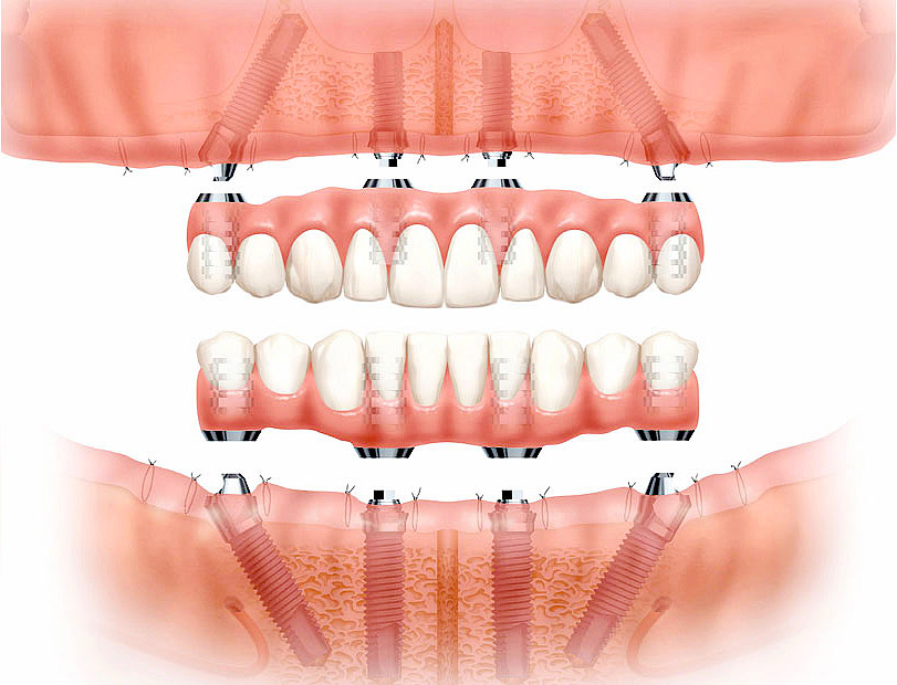 Apatinio bedančio žandikaulio implantavimas ant 3-jų dantų implantų per vieną dieną už beveik perpus žemesnę kainą. Tai naujausias svarbus išradimas – sąlyginai įvardinta „visi ant 3-jų“ dantų implantavimo sistemos kūrėjų ir pacientų svajonė, tapusi realybe. Nuolatiniai viso apatinio žandikaulio dantys per vieną dieną ypač aktualu gyvenantiems toli nuo implantuojančios klinikos ir dar toliau – nuo savo šalies.